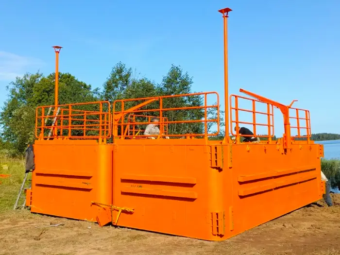 Продается буровая платформа, состоящая из 3 зарегистрированных понтонов, доукомплектованные катером БМК-130М. Идеально подходит для организации буровых работ, понтонных переправ, мостов, а также для транспортировки оборудования.